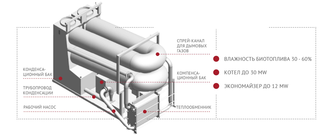Разработана для древесной биомассы с содержанием влаги в 35–60 %, а также для сжигания сухих биотоплив 15–45%.