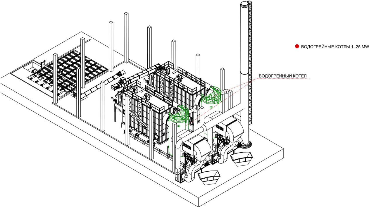 В котельных, работающих на биомассе (КДО), используется в автоматической системе подготовки топлива, где кран переносит древесную щепу ближе к топливным платформам.